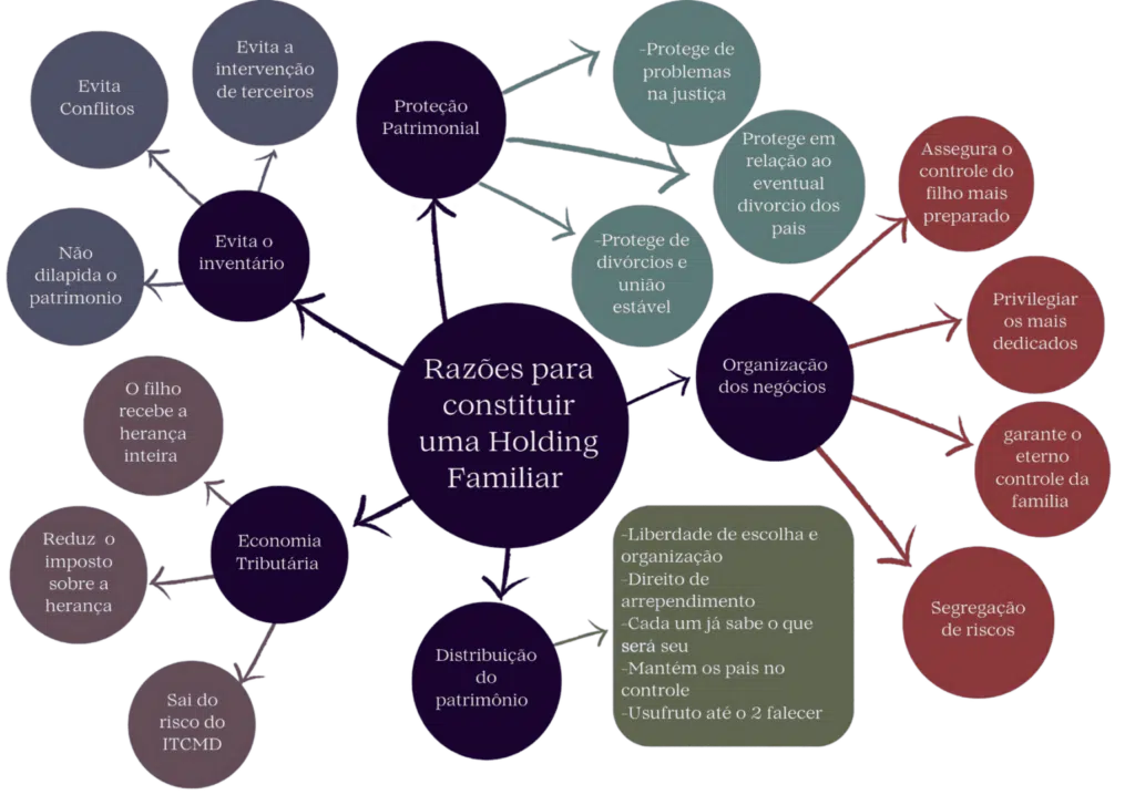 Uma holding familiar evita conflitos entre herdeiros, ao definir previamente a divisão do patrimônio, reduz a carga tributária, otimizando impostos sobre herança e doações, garante mais controle e proteção sobre os bens familiares e torna a sucessão mais rápida e eficiente, evitando um inventário tradicional demorado e custoso.